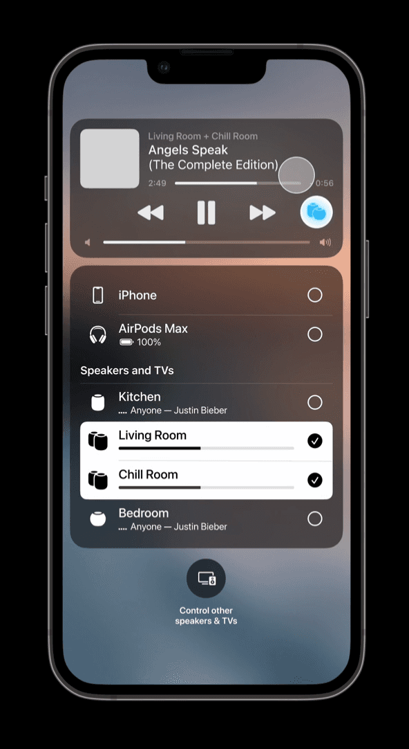 The current AirPlay menu animation feels abrupt and visually disconnected from what is happening. This concept explores a smoother, more spatial transition that better communicates the shift between devices and playback context. By making the animation feel more continuous and intentional, AirPlay becomes easier to understand at a glance and feels more aligned with the rest of the system’s motion language.