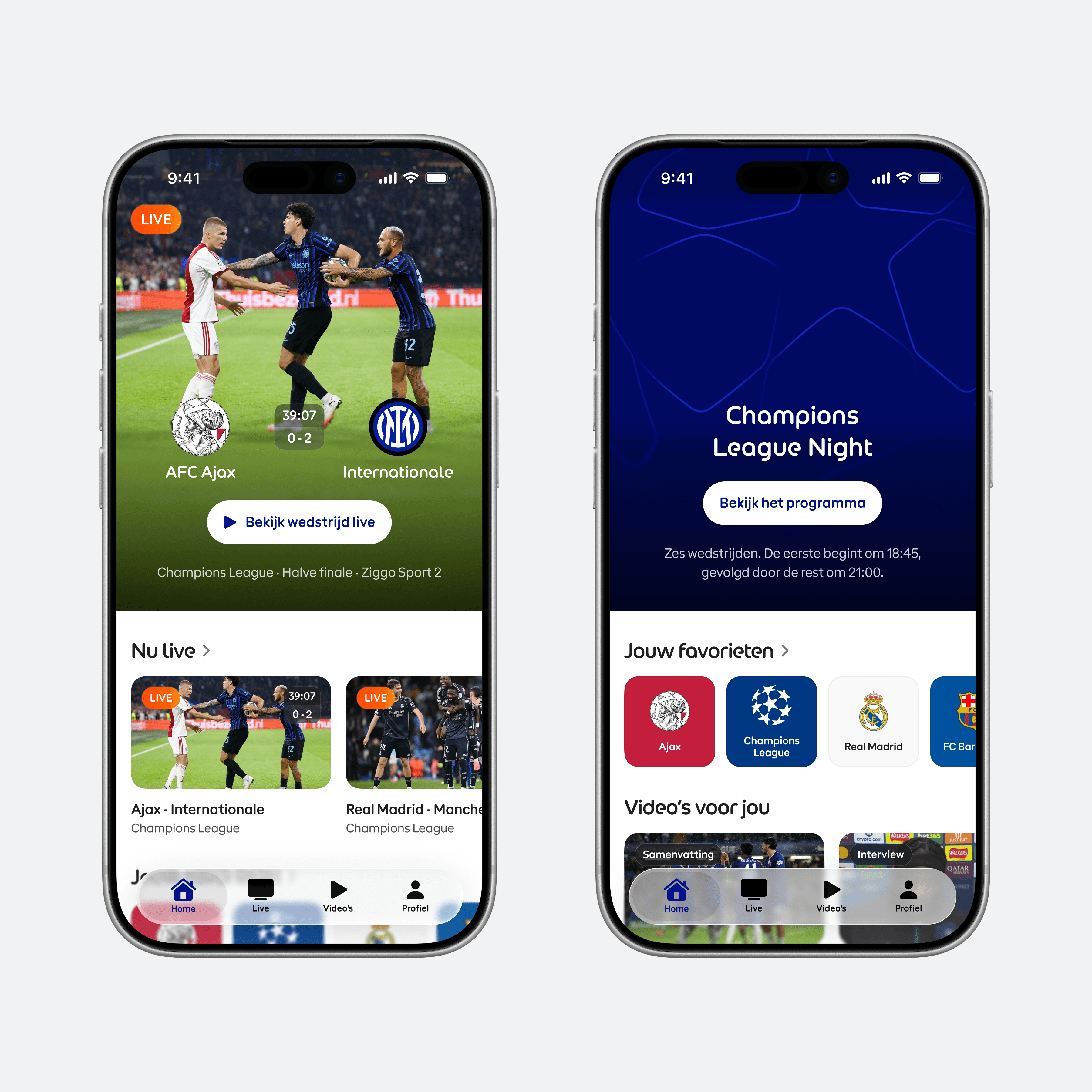 I think the current app still behaves too much like a channel browser. This concept turns the home screen into a more relevant starting point based on followed teams, competitions and live moments. If a match you care about is live, it becomes the main entry point. If not, the screen shifts toward the most relevant fixtures, clips and highlights for that moment of the day.